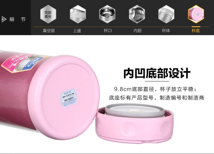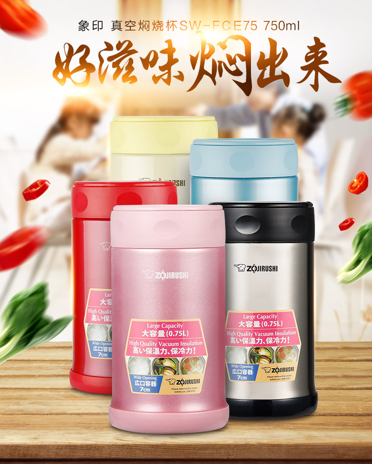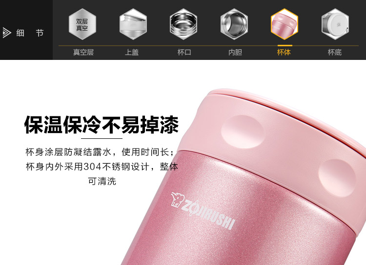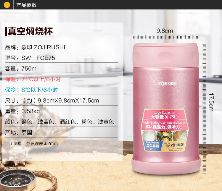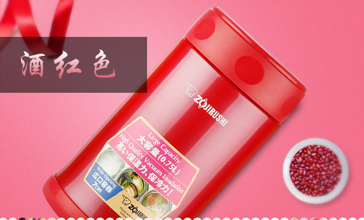 日本象印焖烧杯大容量保温杯学生带餐保温饭盒男女食物罐500/750ml SW-FCE75-PS-珠粉色-750ml