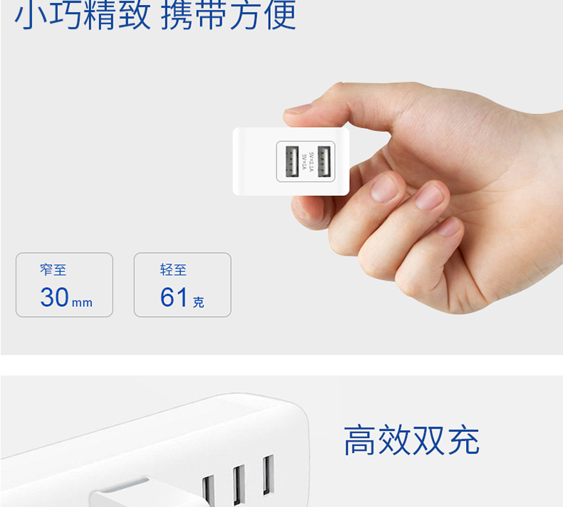 双USB 折叠式的AC插头 精巧便携、即插即用