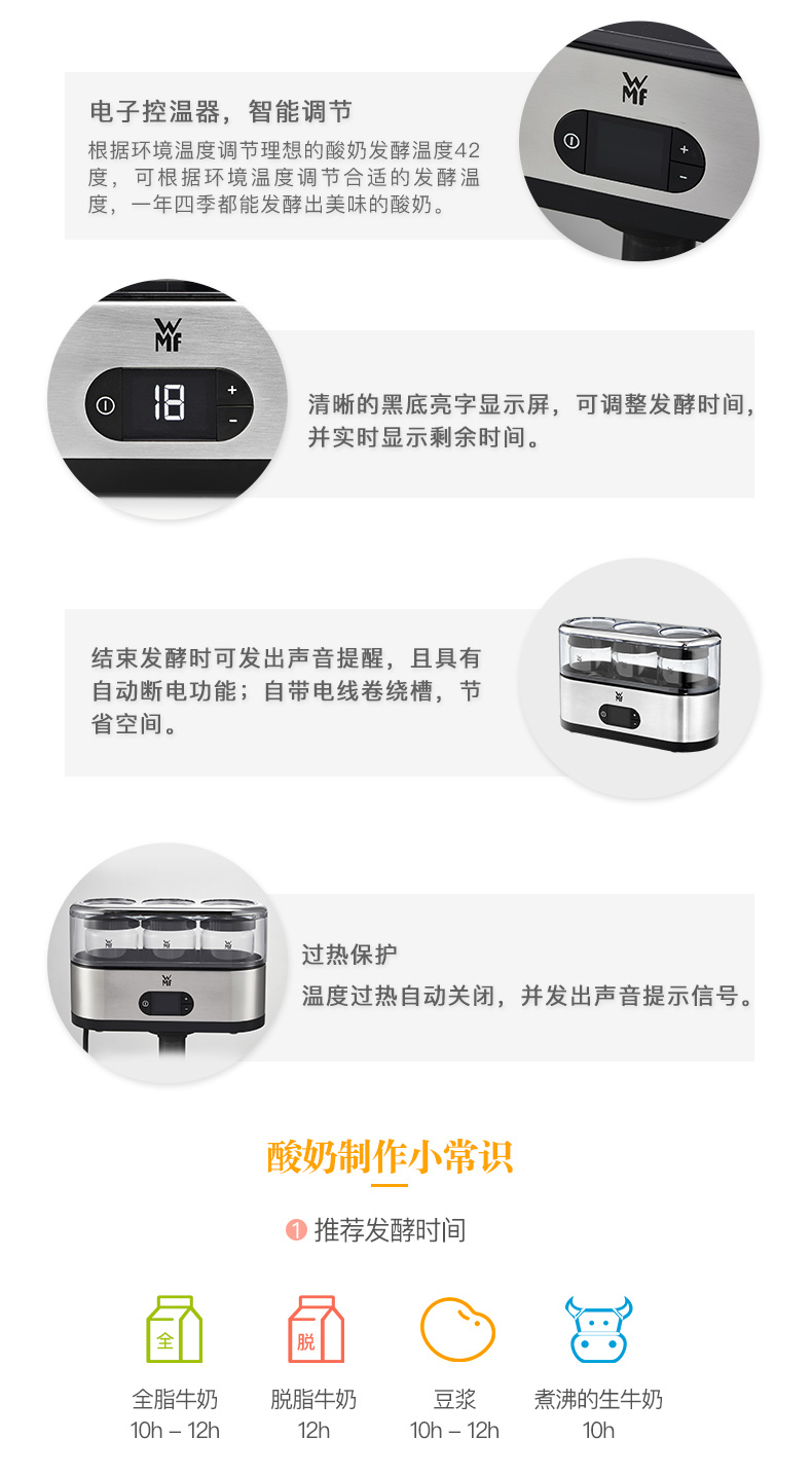 4.电子温控器可以根据环境温度调节最佳的酸奶发 酵温度