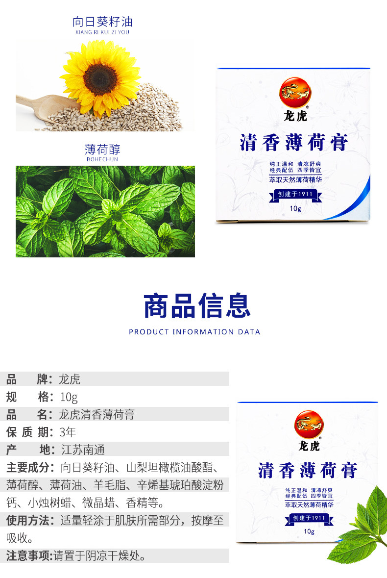 主要成分: 向日葵籽油,薄荷醇,薄荷油,羊毛脂等。 使用方法: 取适量本品均匀涂抹,可缓解蚊虫叮咬或皮肤干燥引起的肌 肤不适;舟车劳顿时,精神不振时,涂抹于太阳穴更可清凉怡神,振奋精神; 也可涂抹适量于耳后、颈部、手部、足部。