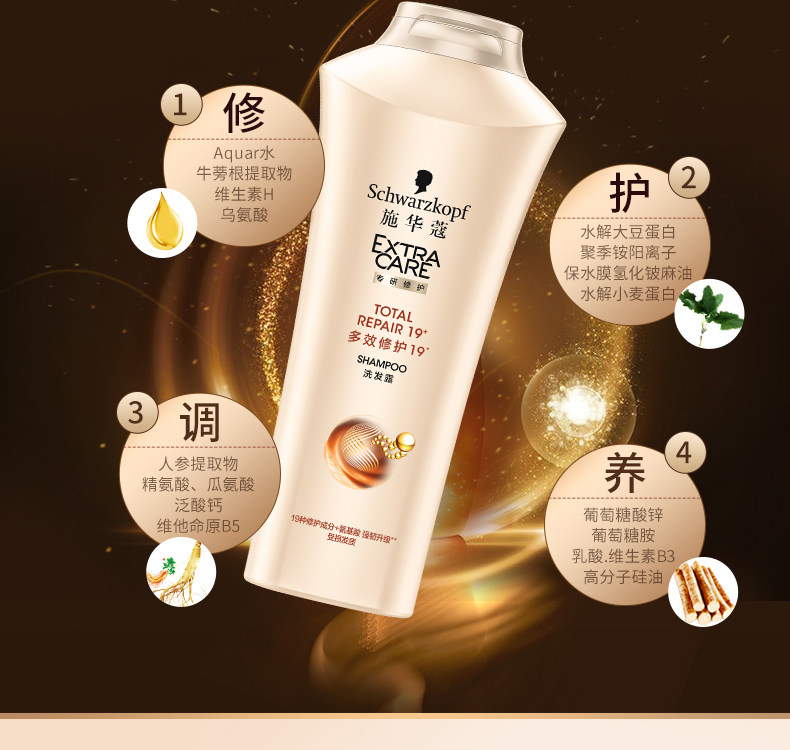 19种新活成分,多效修护受损发质!重塑发芯结构,保护秀发表层,解决头发多重问题,令秀发更加强韧亮泽!