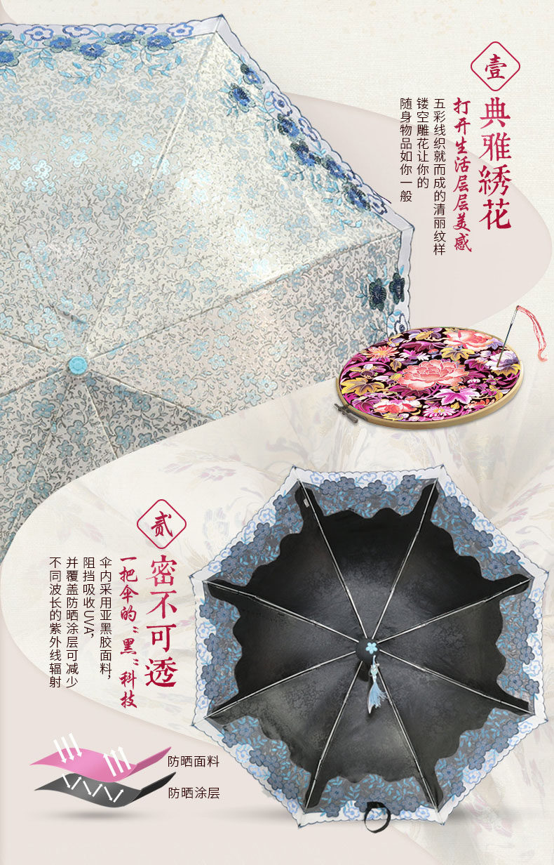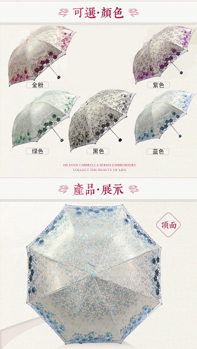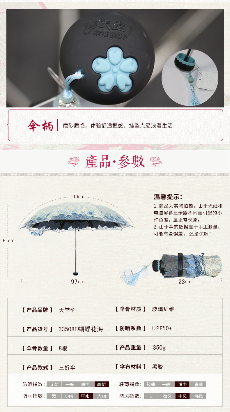 天堂伞 黑胶雨伞 三折伞 晴雨两用伞