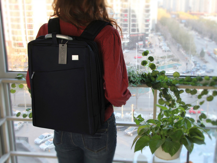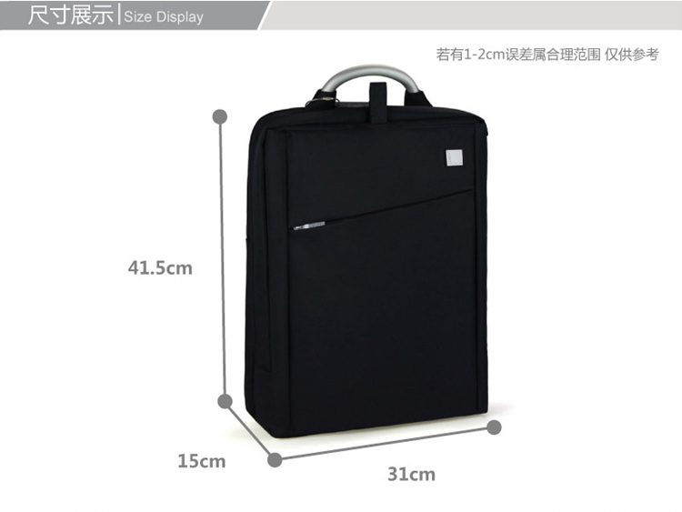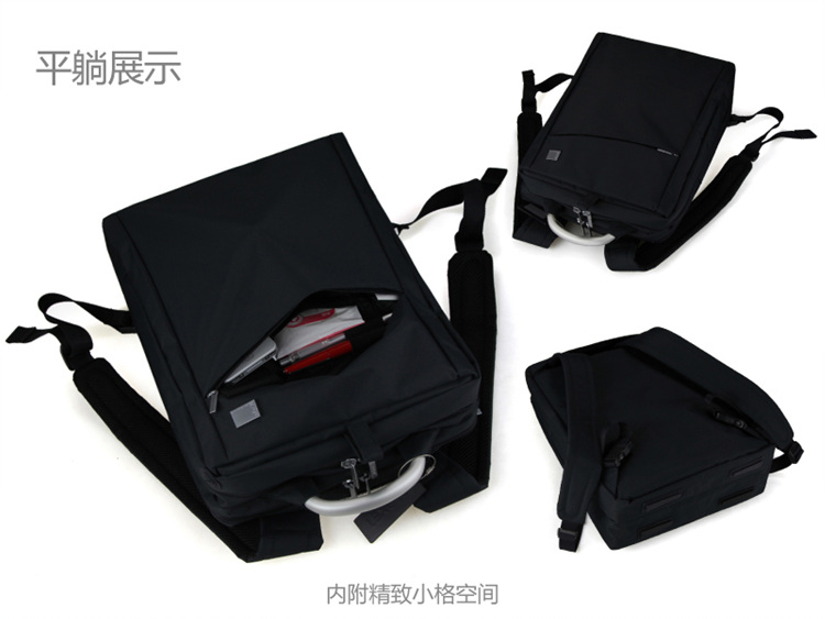 双层背包 -笔记本电脑隔层- 环保背胶- 1个铝合金手把- 可变换为公文包 - 隐藏式肩带 不喜欢心爱的笔记本电脑跟其他杂物堆在一个空间里,想要最快的速度找到自己想要的物品,这款双层双肩包就能够满足您的需求。同样是超细纤维面料,简约又符合人体力学的外观设计,都让这款包包既实用又时尚。