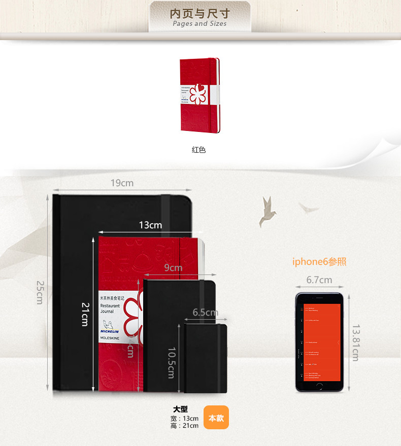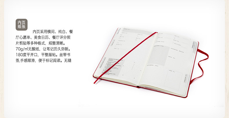 产品名称:Moleskine/魔力斯奇那 80...内页材质: 无酸纸包装数量: 单本装品牌: Moleskine/魔力斯奇那型号: 8058341719305生产企业: Moleskine适用人群: 学生 白领适用场景: 书写 手帐 教学培训 绘图 送礼页数: 100页以上颜色分类: 红色幅面: A5流行元素: 其他/other记事本分类: 其他/other封面硬度: 硬面抄装订方式: 线装式装订封面材质: 其他/other风格: 人文 创意潮流