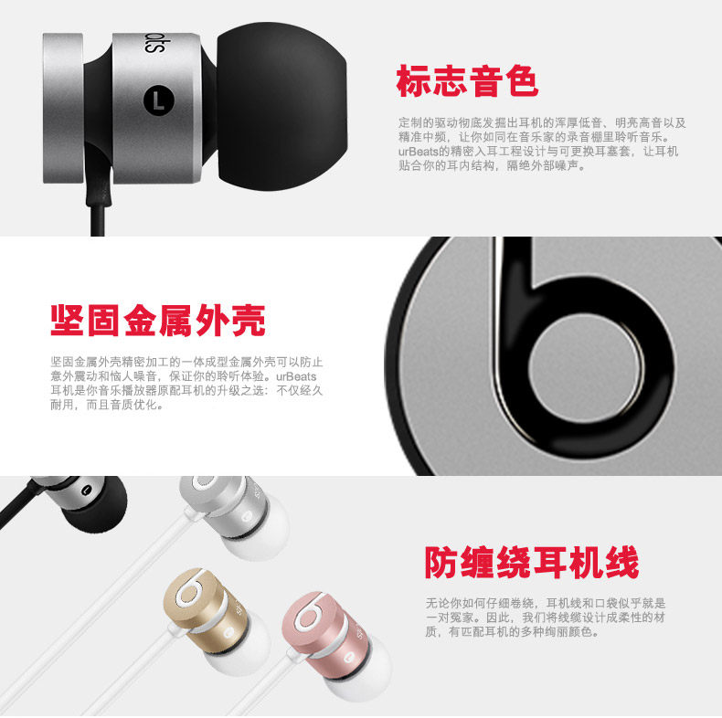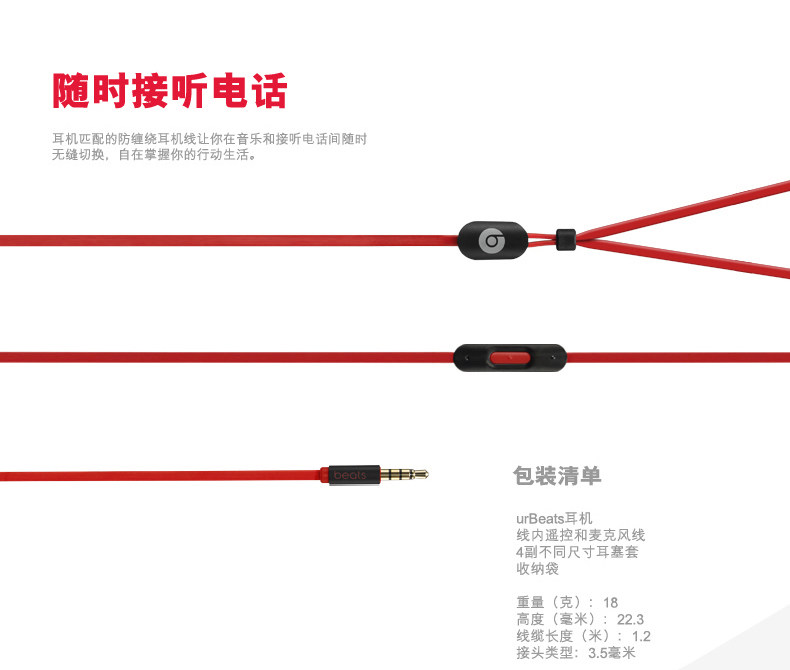 标志Beats音色 坚固金属外壳 防缠绕耳机线 随时接听电话