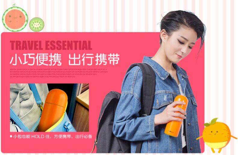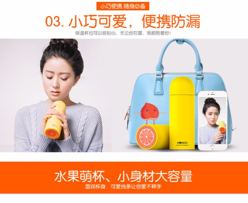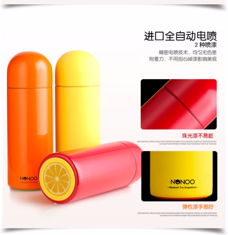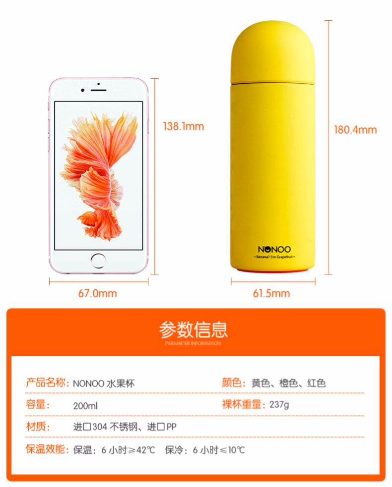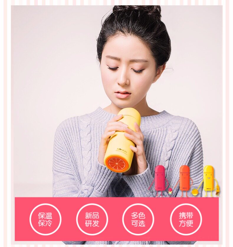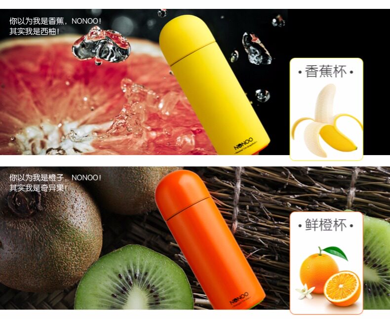 圆头不倒翁杯盖,杯身与杯底及内身为不同水果颜色,衬托出看我内心的理念
