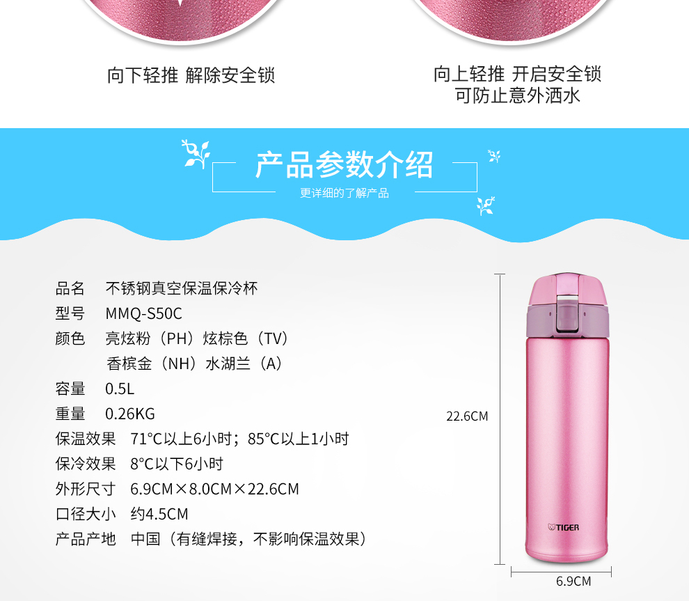 直饮杯 MMQ-S50C 500mlTV6.9*8.0*22.6cm高端品牌冷!