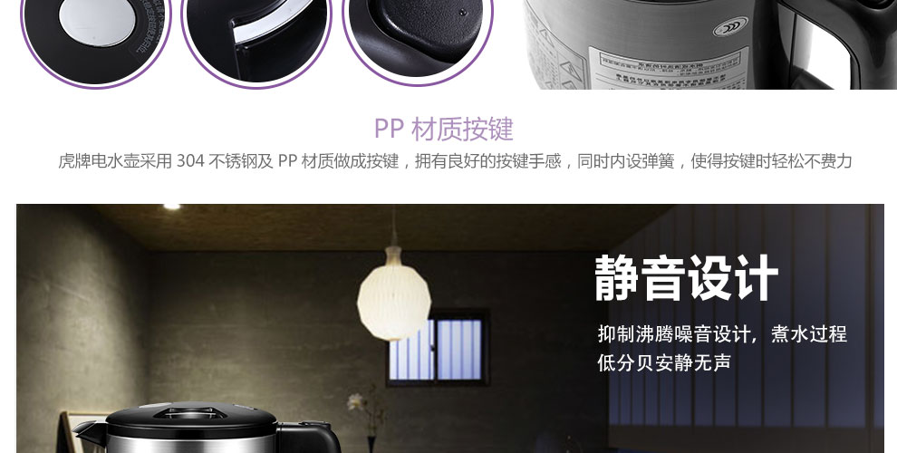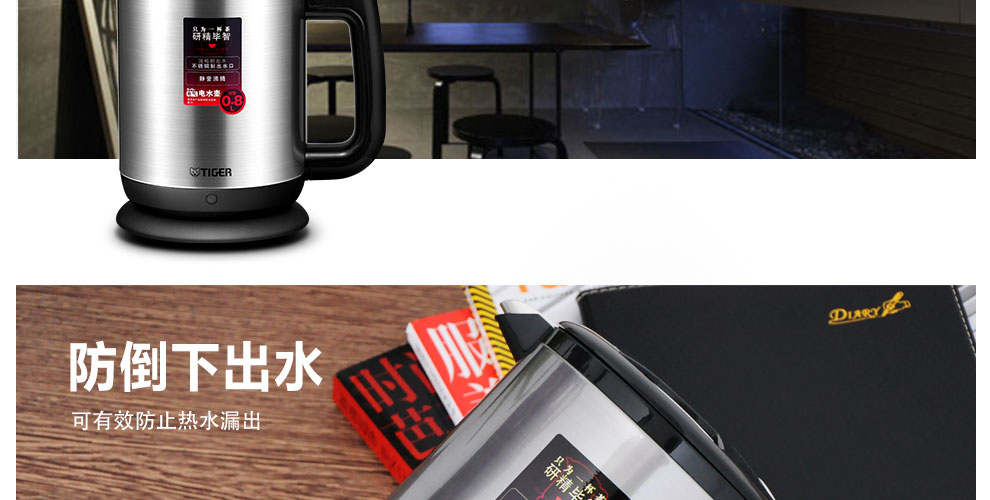 虎牌(Tiger)保温壶不锈钢便携按压式热水瓶PWL-A16C 1.6L 天鹅灰TG