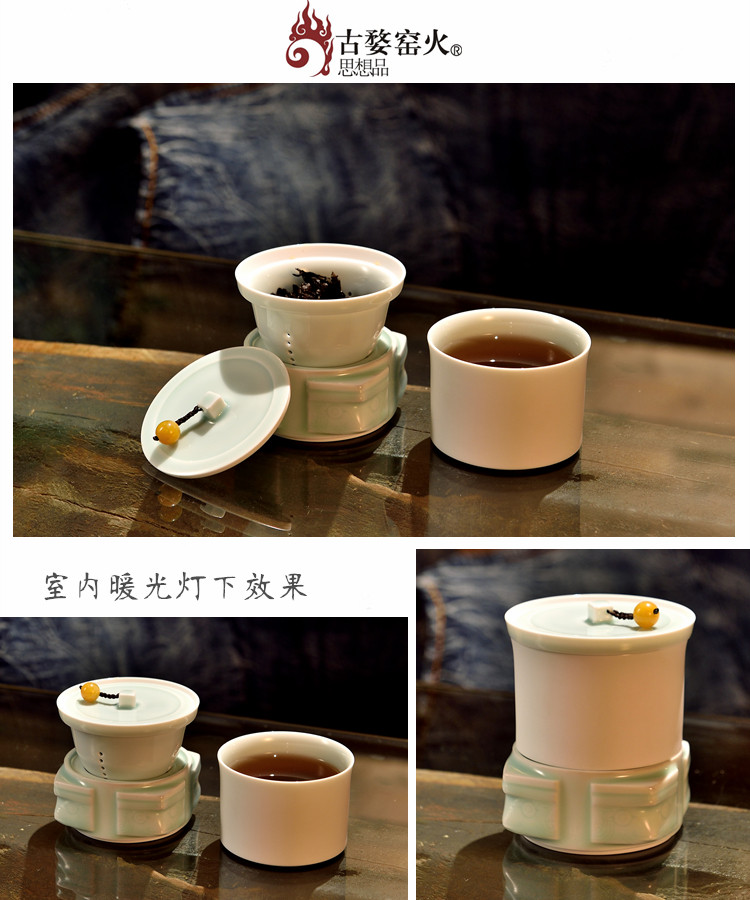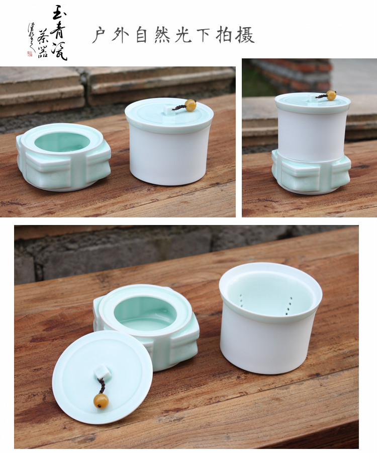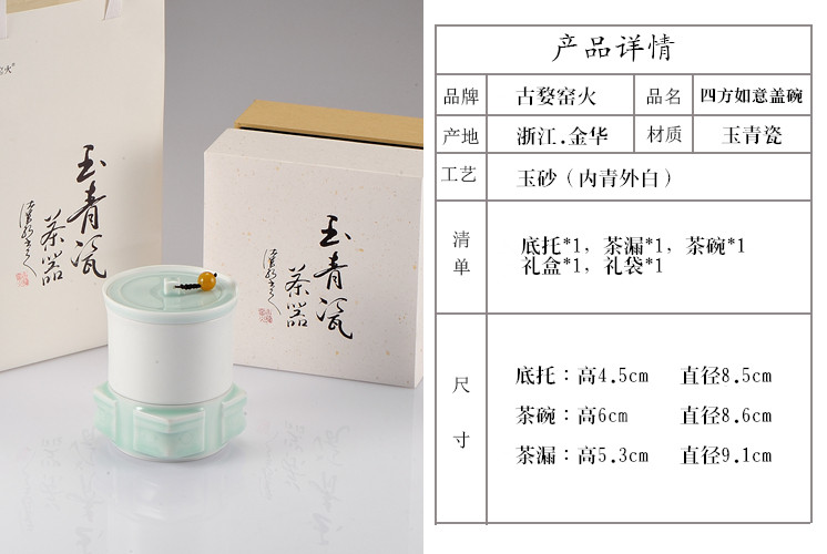 婺州瓷 玉青四方如意盖碗茶漏底托茶杯一套 便携快客杯功夫茶单杯