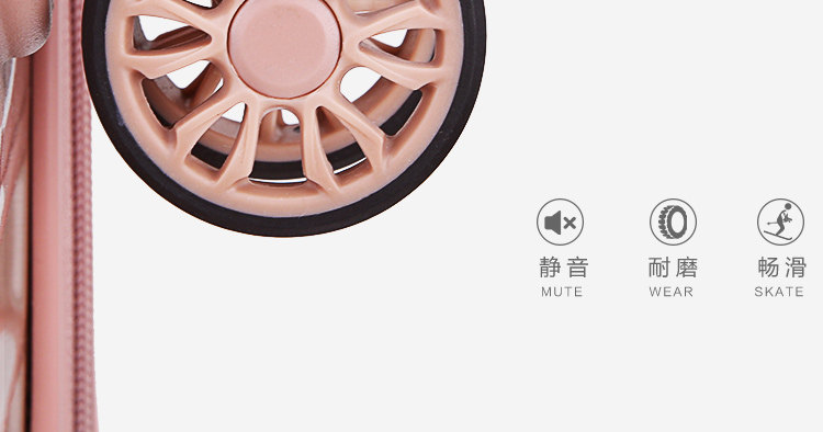 2.360°静音万向轮、移动顺畅,旅途更轻松。
