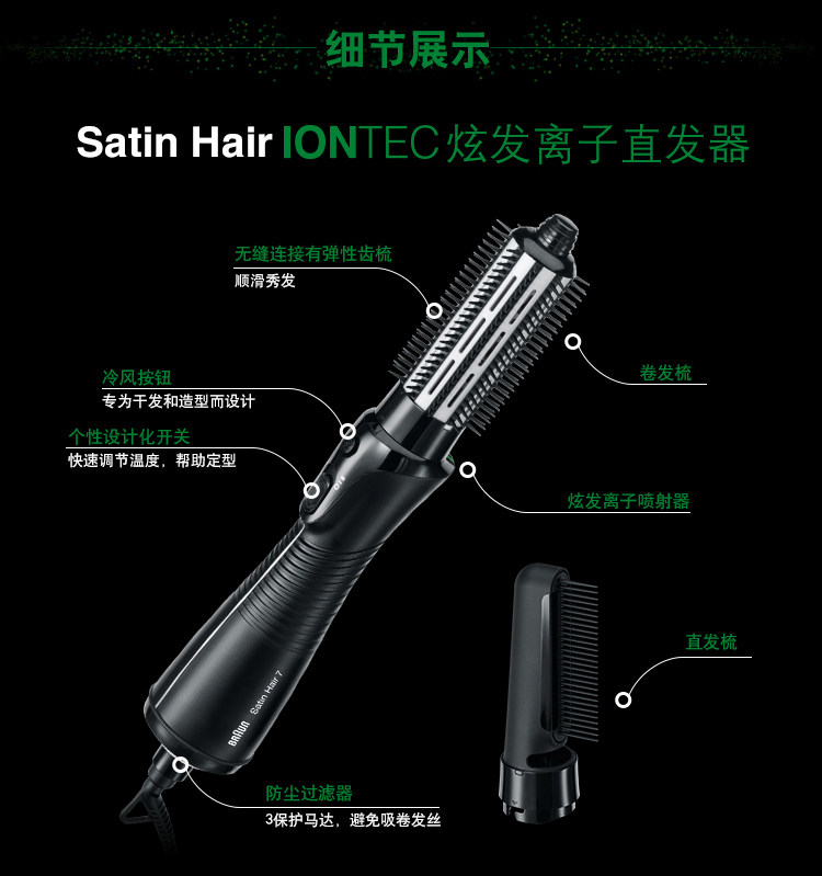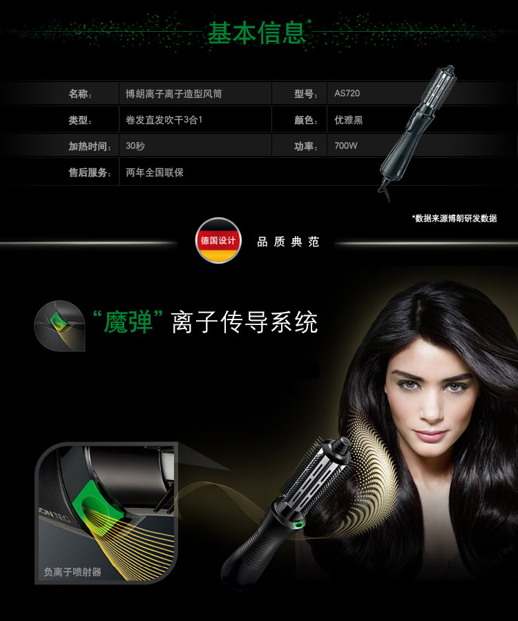 产品名称:皮肤及毛发护理器具(博朗离子造型风筒)3C产品型号:3551 220-240V~ 50/60Hz 590-700W产品名称:Braun/博朗 AS720 产地: 中国大陆 品牌: Braun/博朗 型号: AS720 电源方式: 插电式 颜色分类: 黑色功率: 100W以上 类型: 多功能美发器导热体直径: 21mm(含)-30mm(含)导热体材质: 其他/other 最佳造型时间: 3分钟(含)-5分钟(含) 适用发质: 干湿两用
