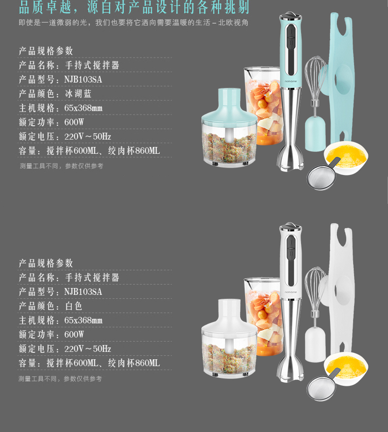 颜色:天使白 电压/频率/功率:220V/50Hz/600W 规格:果汁杯600ml,绞肉杯860ml 装箱数:8台/箱