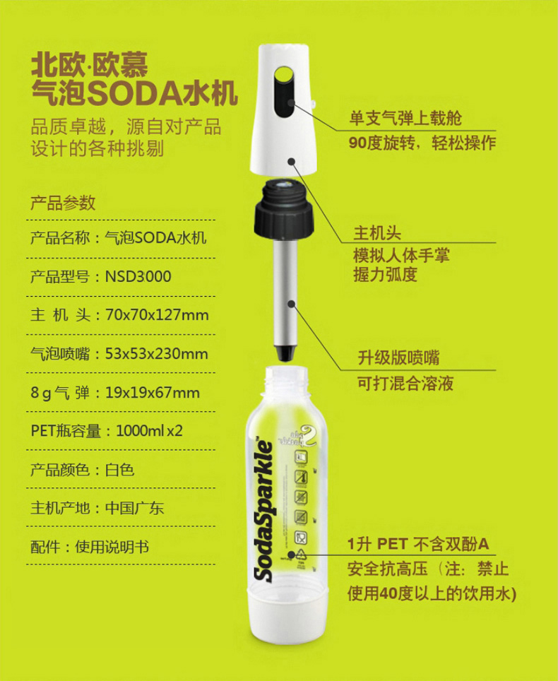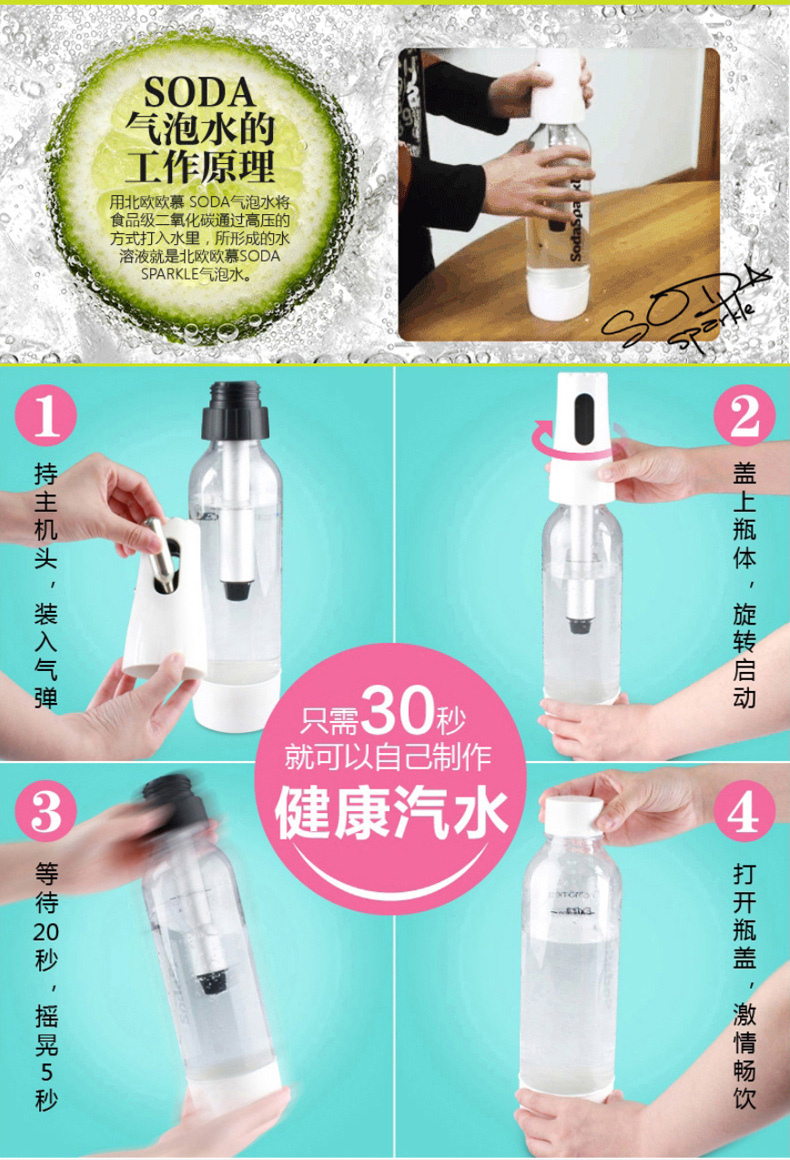 颜色:白色 配件:启动主体x1,气泡喷嘴管x1,1L PET瓶x1,1.3L PET瓶x1 瓶盖x1、气瓶x3 容量:1300ml 装箱数:6个/箱 外箱尺寸:510*400*342mm 外箱立方数:0.0700(1个立方数产品数量为86个,3个立方数产品数量为257个)