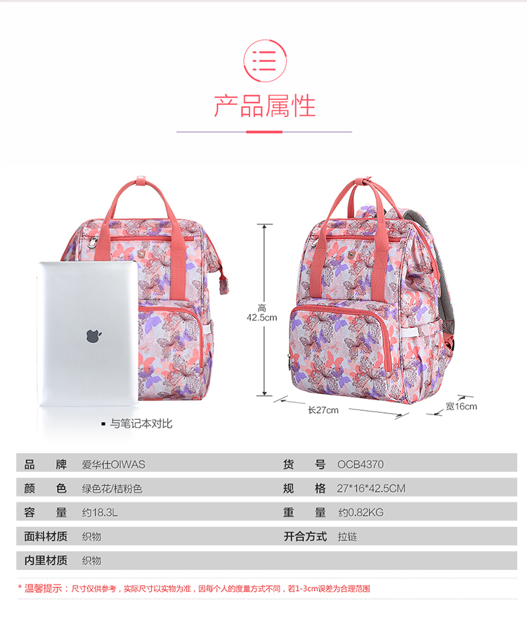 型号:OCB4371 材质:织物 尺寸: 215*100*265MM 颜色:桔粉色