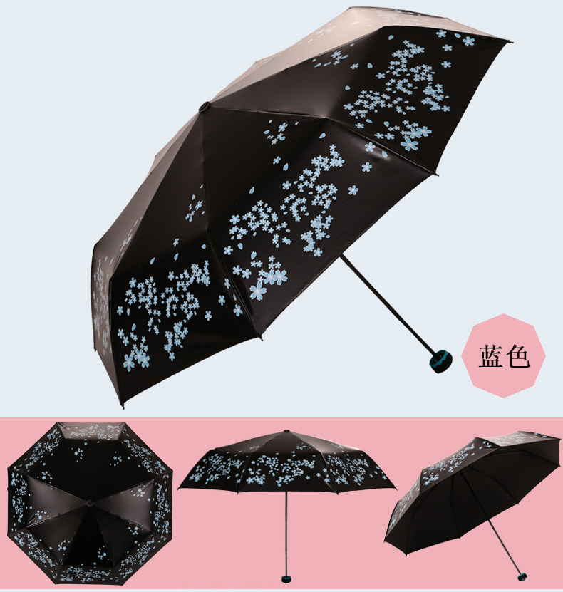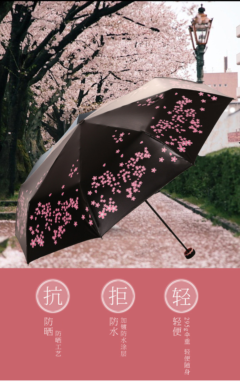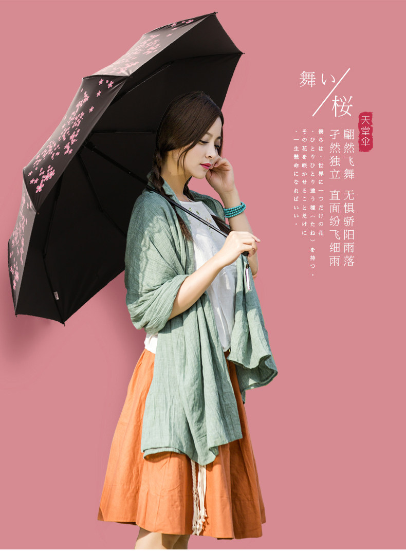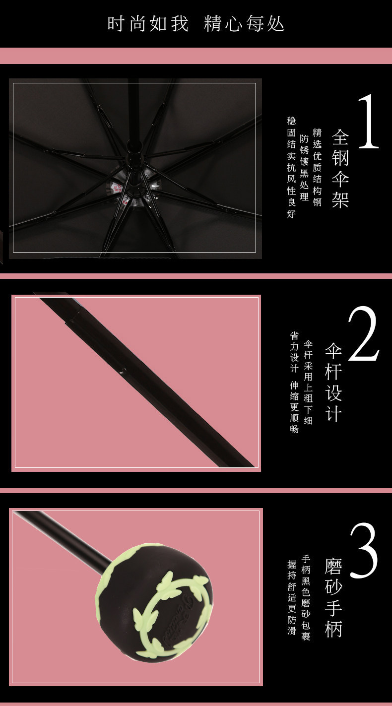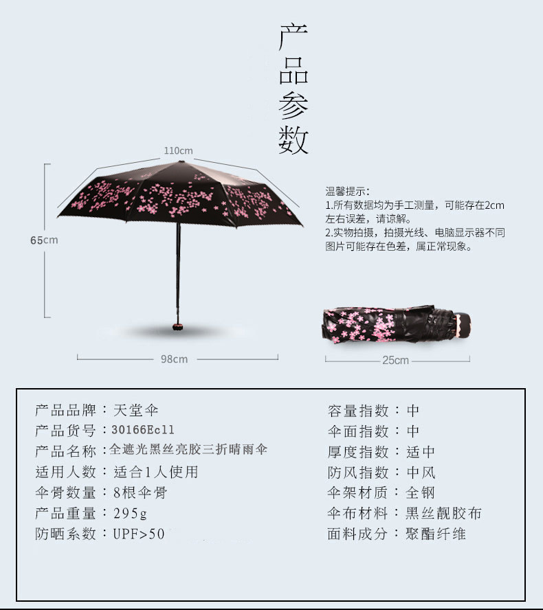 天堂伞 轻巧黑胶防晒 防紫外线 三折小黑伞