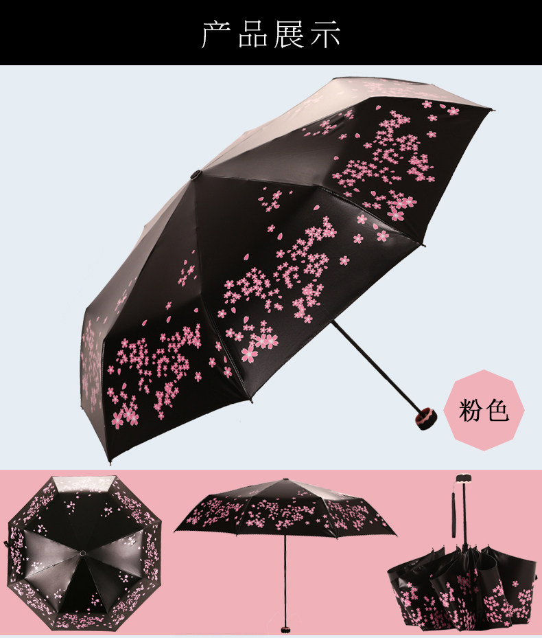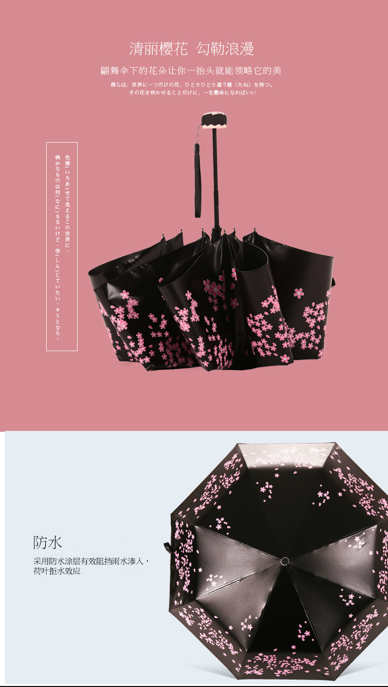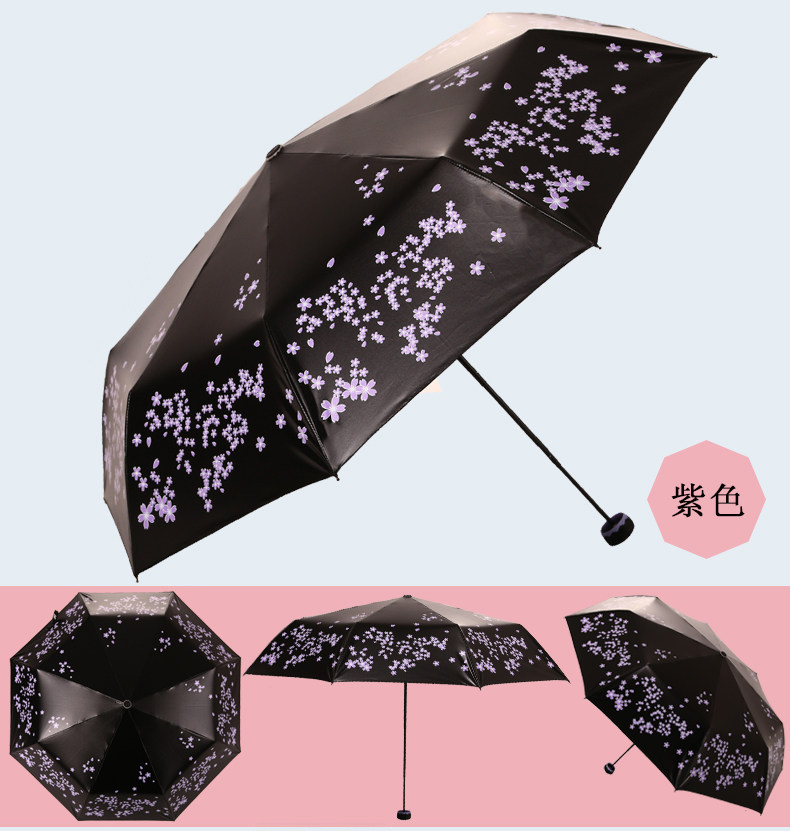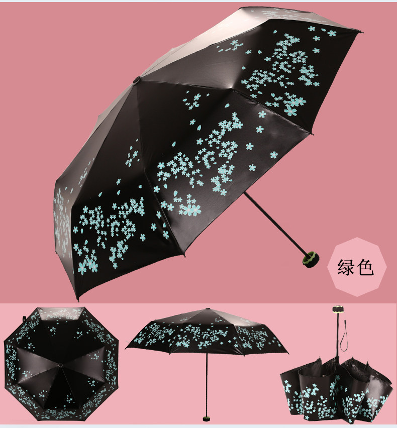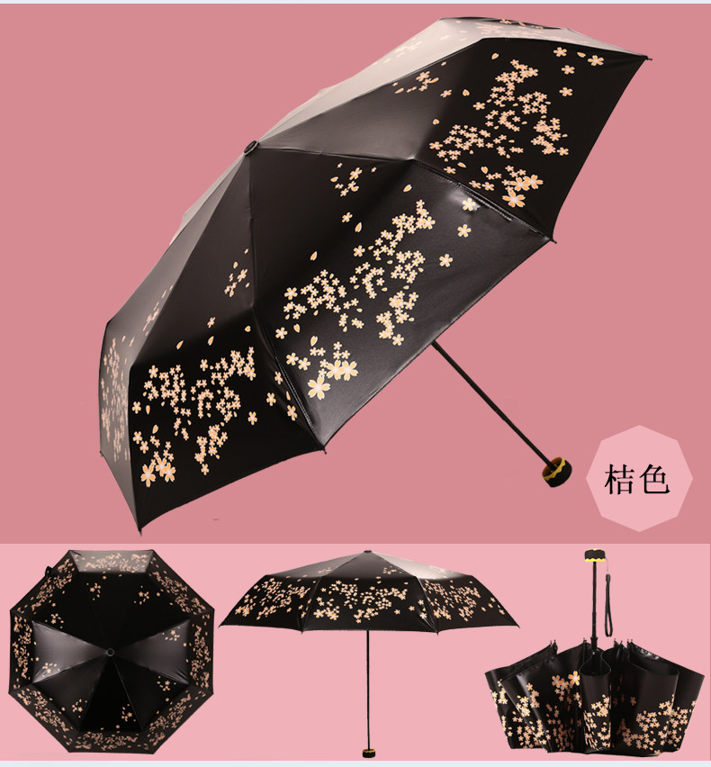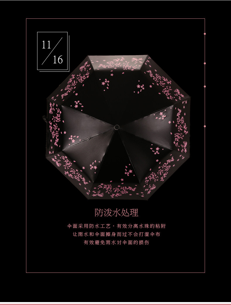 天堂伞 轻巧黑胶防晒 防紫外线 三折小黑伞
