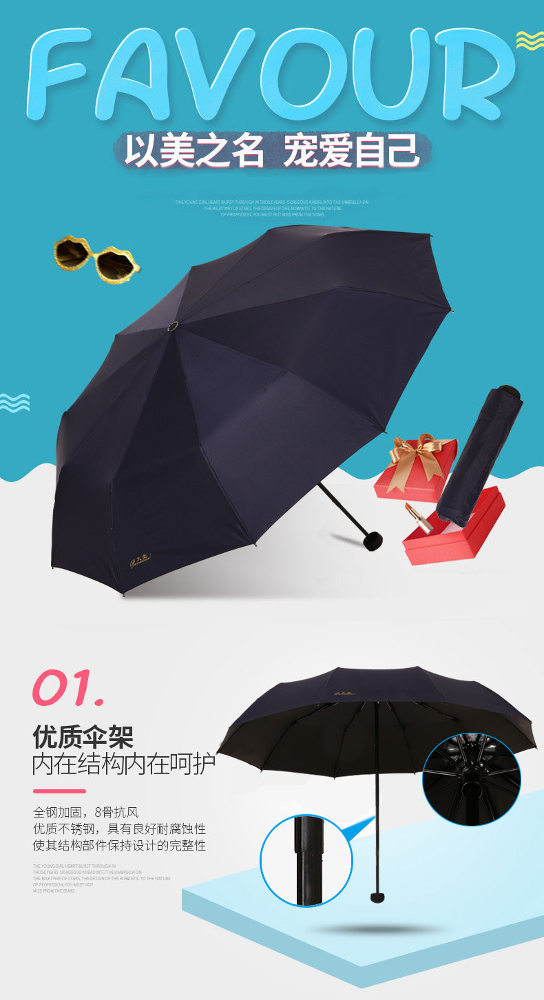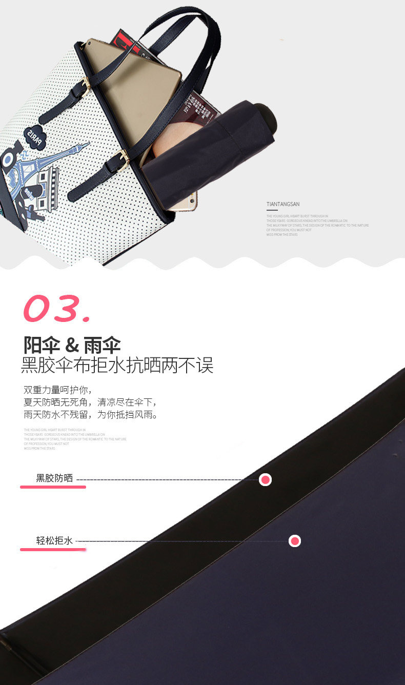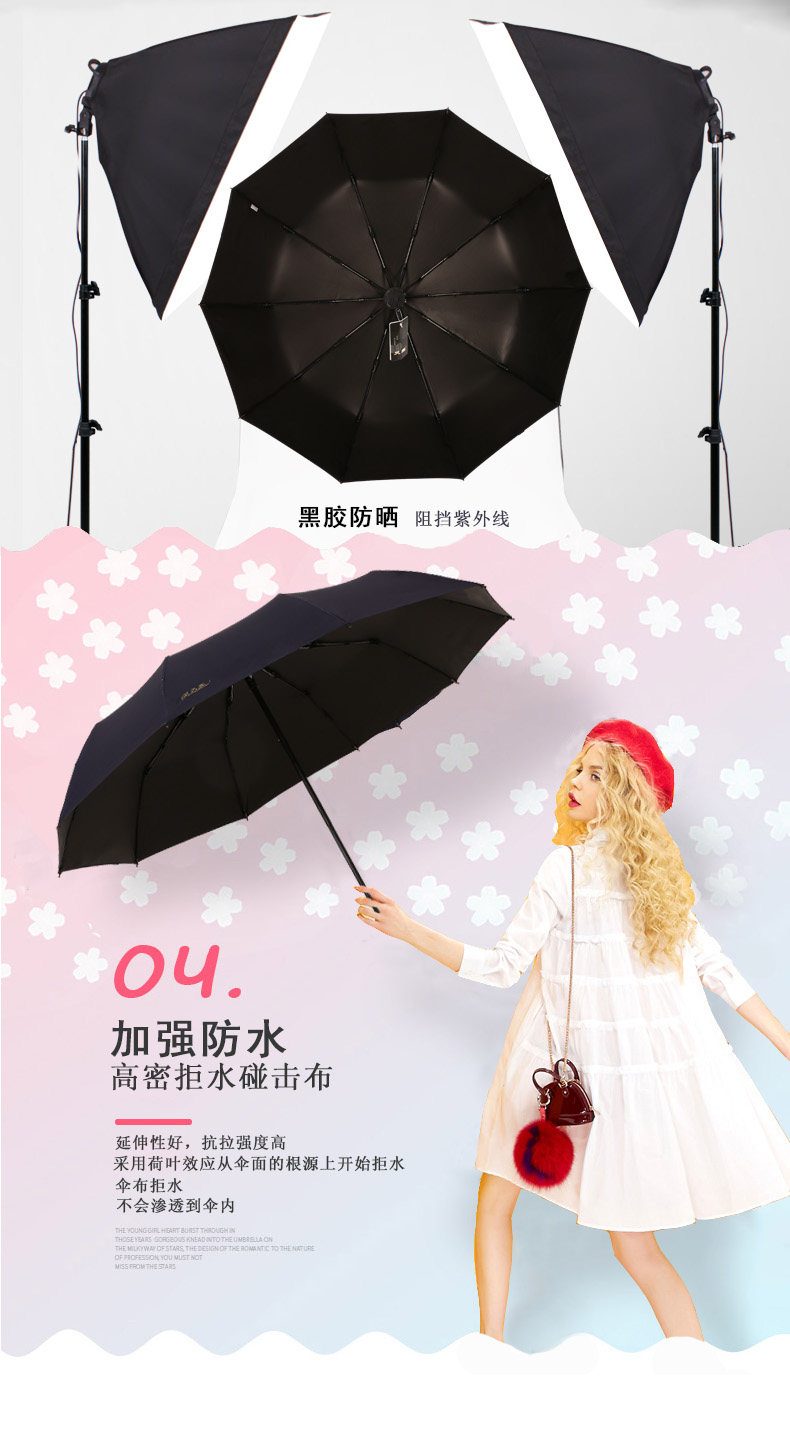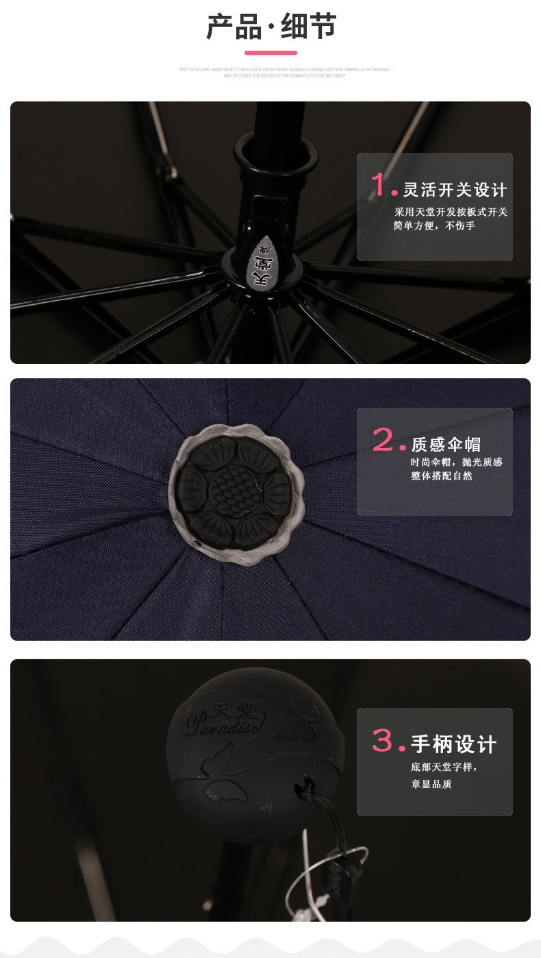 天堂伞 商务晴雨伞 黑胶伞 防紫外线