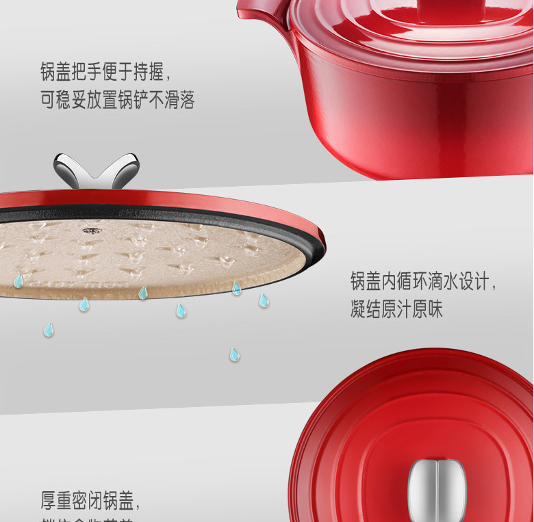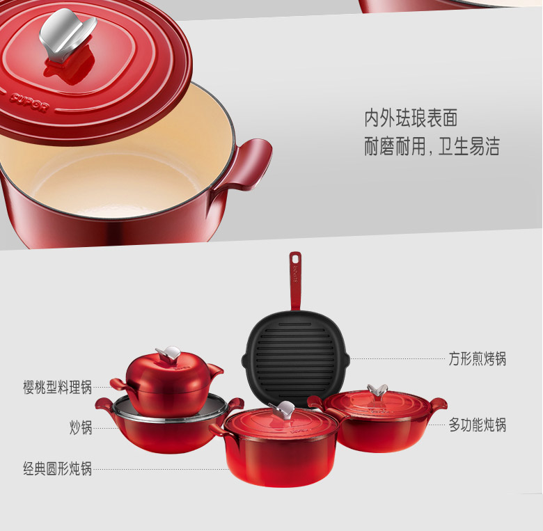 商品名称:苏泊尔(SUPOR) 汤锅 珐琅铸铁多功能炖锅 电磁炉燃气灶通用锅具 樱桃红FLT22A1商品编号:15895881762商品毛重:3.0kg材质:铸铁直径:22cm