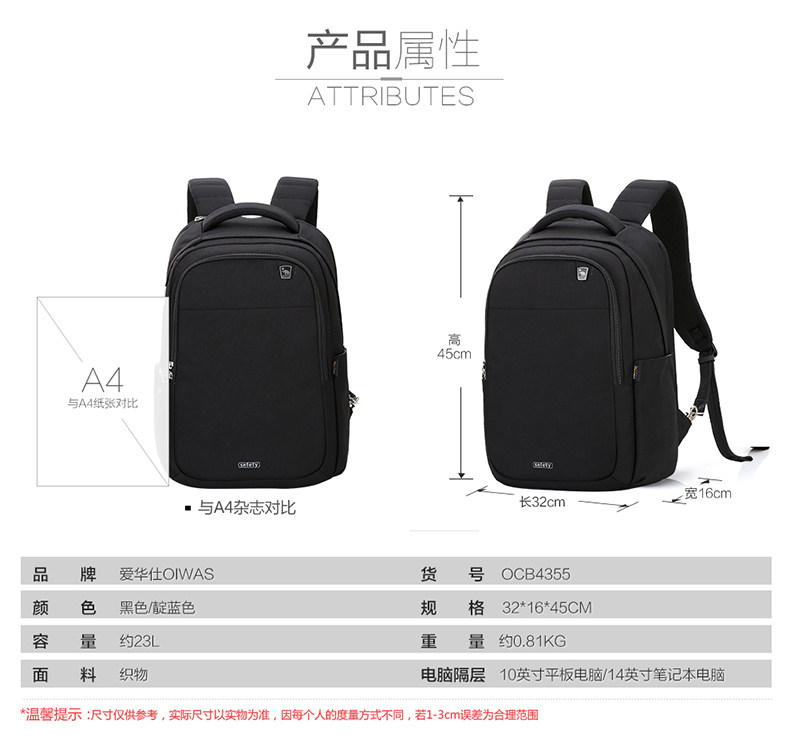 型号:OCB4355 材质:织物 尺寸: 320*160*450mm 颜色:黑色