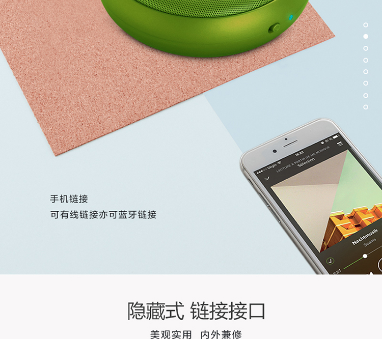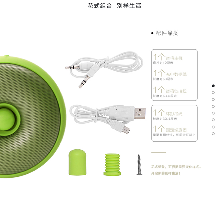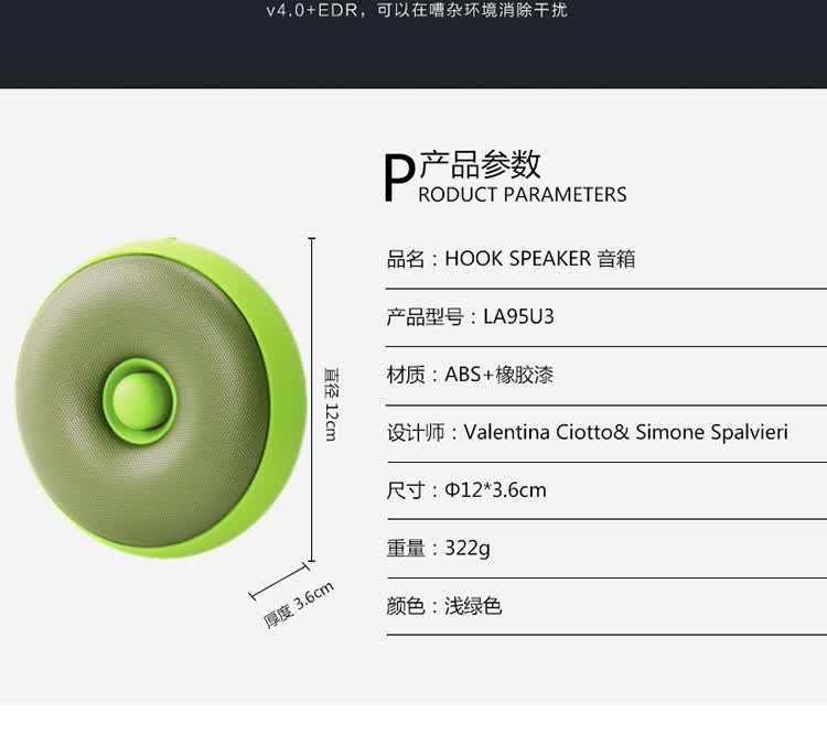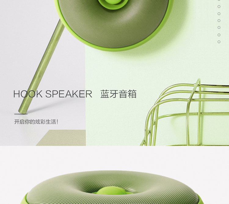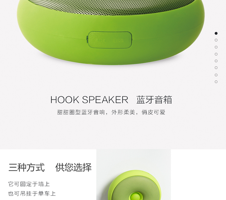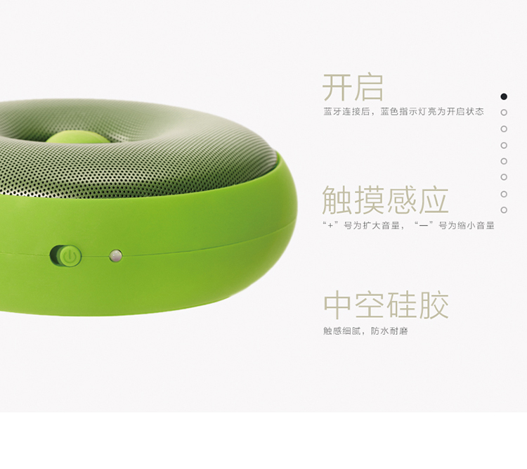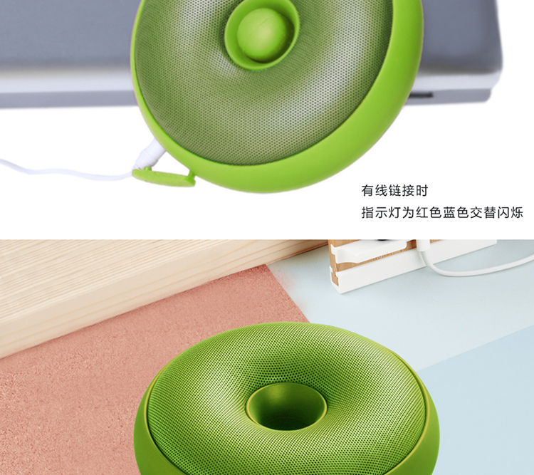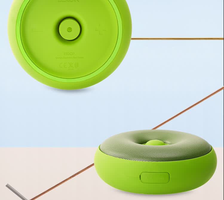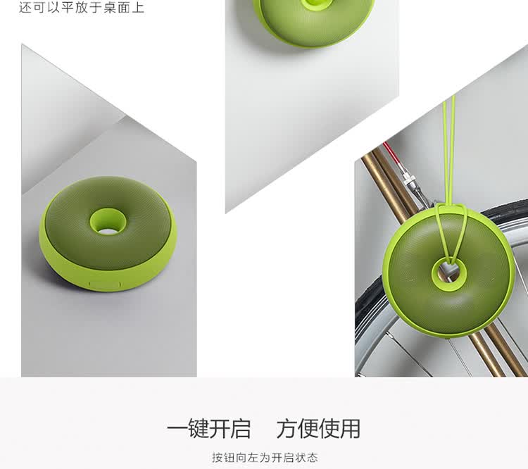 甜甜圈型蓝牙音箱,颜色多彩,精致细密的网格层与中空硅胶套完美结合,柔美独特,俏皮可爱,它可悬挂于墙上,也可吊挂于单车上,便利精致生活。