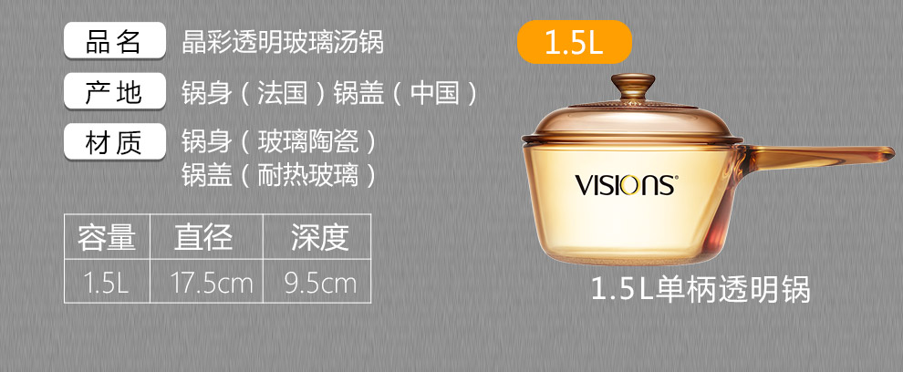 美国康宁VISIONS  经典单柄汤锅  VSP-15