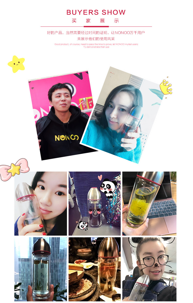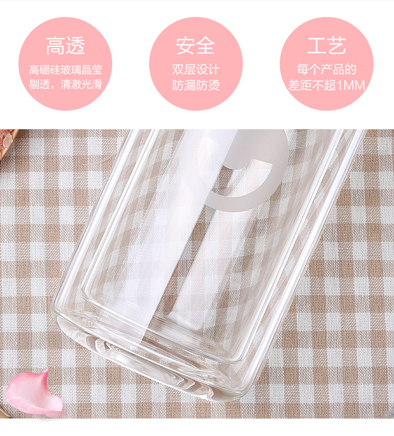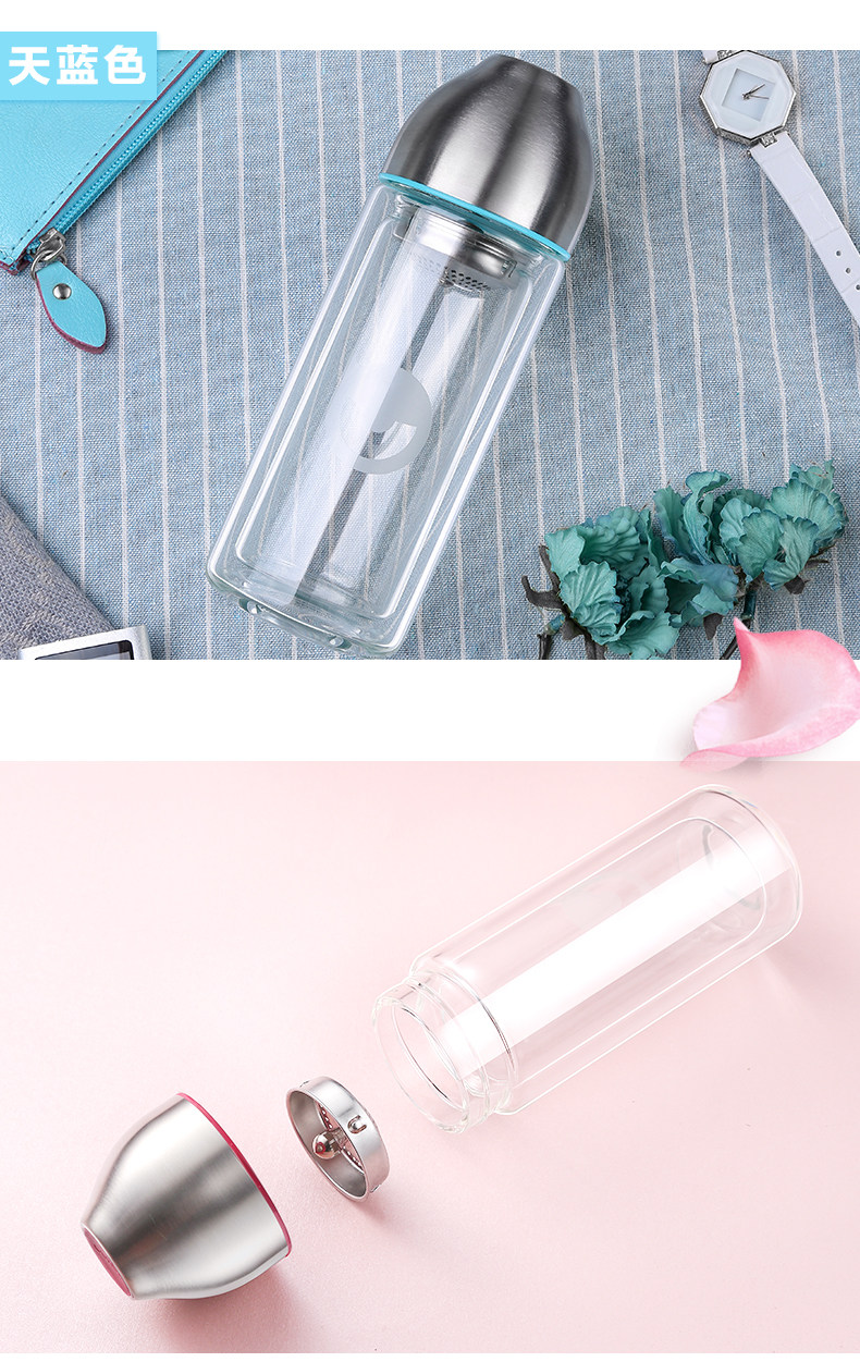 型号:HBL-260-72 尺寸: 6.6*6.6*18.6cm 容量:260mL 装箱:30个/箱 颜色: 粉色、玫红、蓝色、橙色 杯身材质:高硼硅玻璃 密封圈: 食品级硅胶