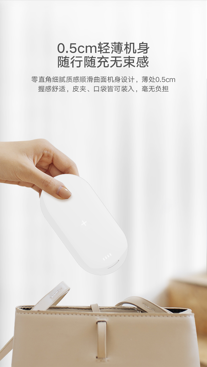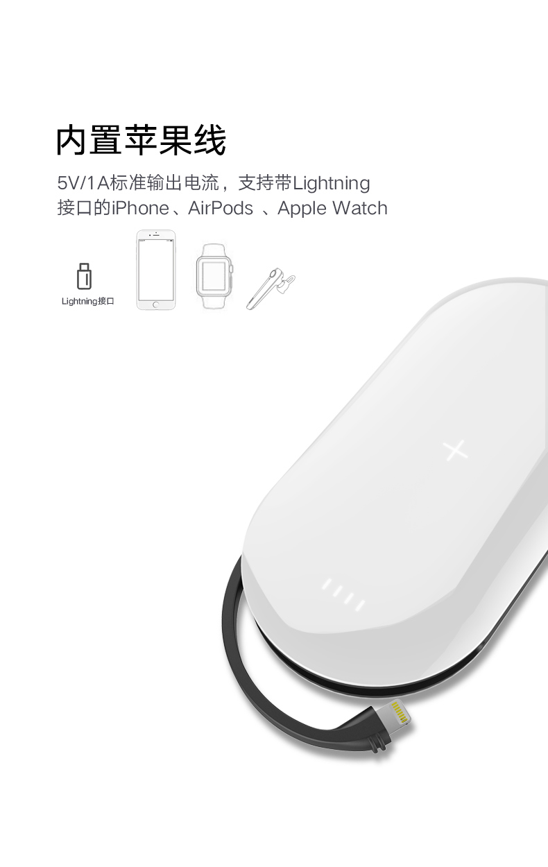 产品规格:5000毫安,输出电压/电5.0V /2A Type-c :5.0V/3A(最大) 电池: 锂聚合物电池 充电时长 : 6-7小时 充电宝 144(L)X71(W)X15(H)mm 充电底座 186(L)X98(W)X19(H)mm10mm厚