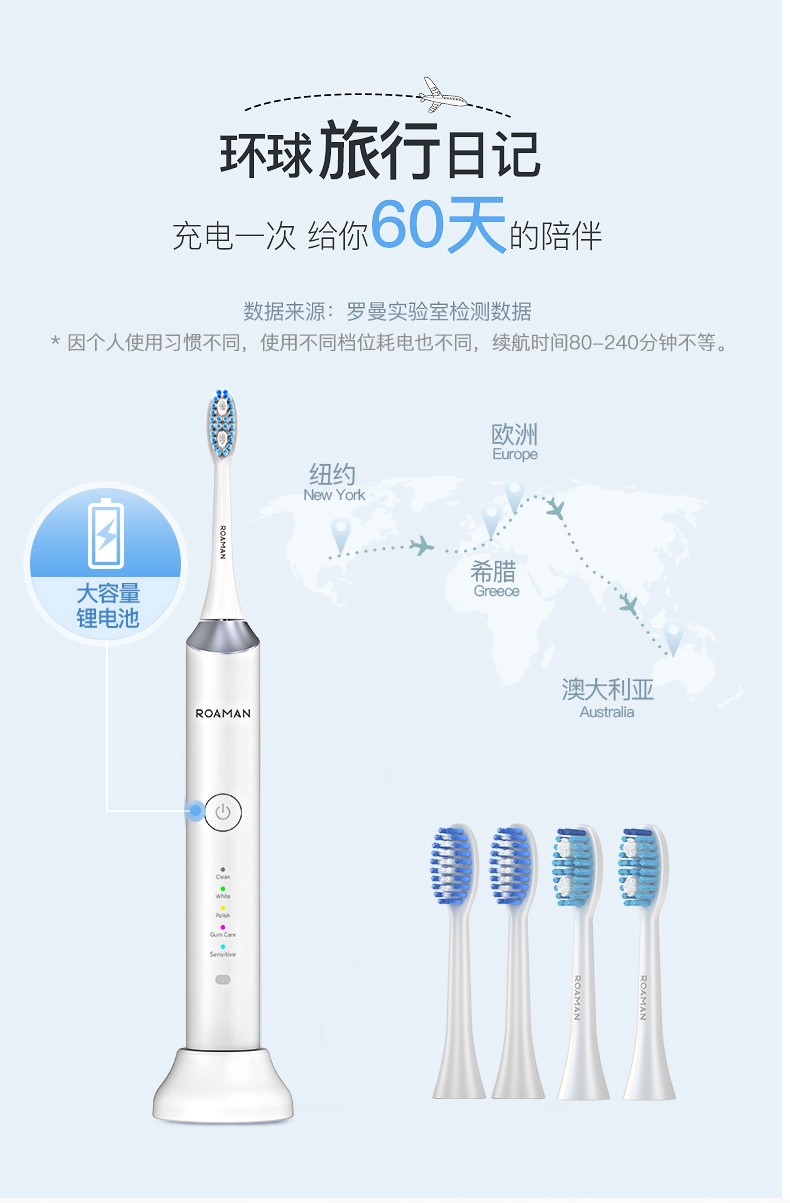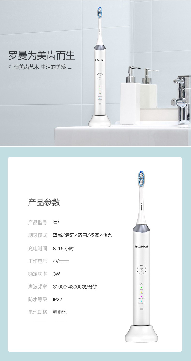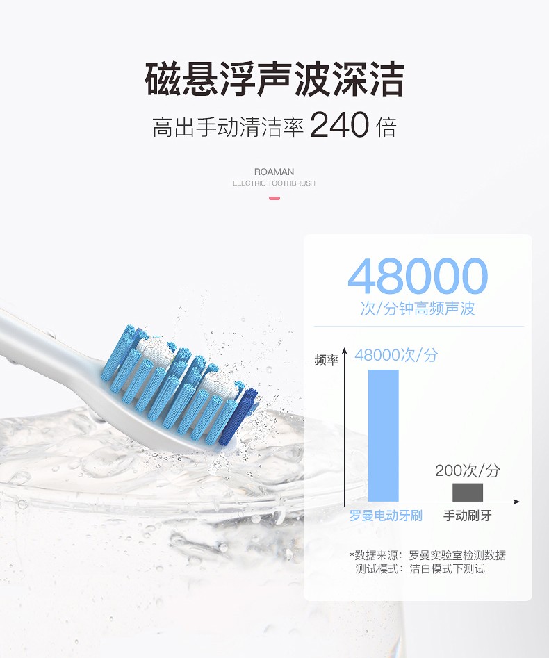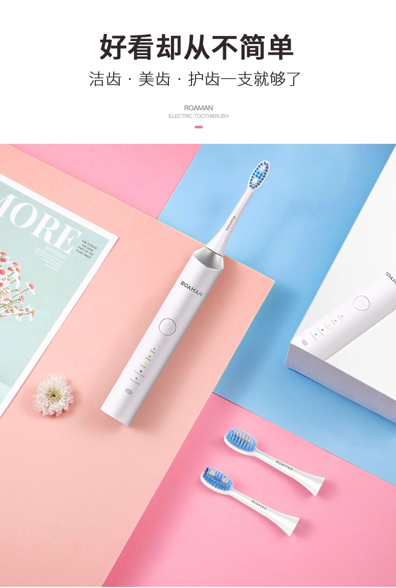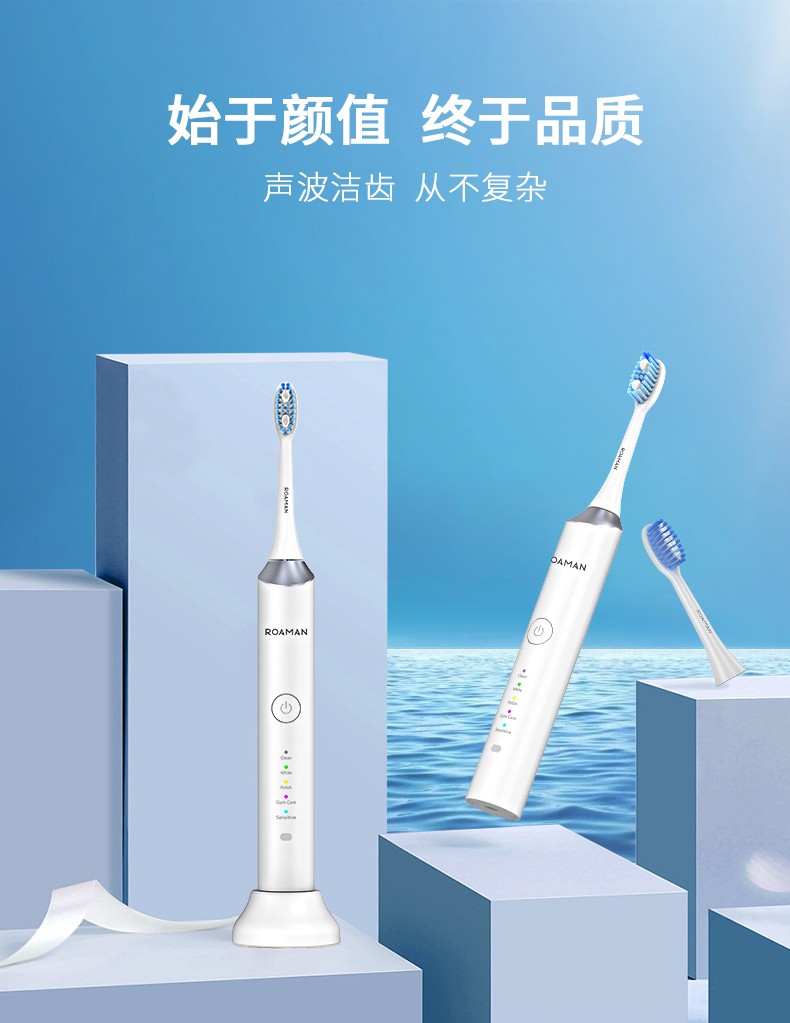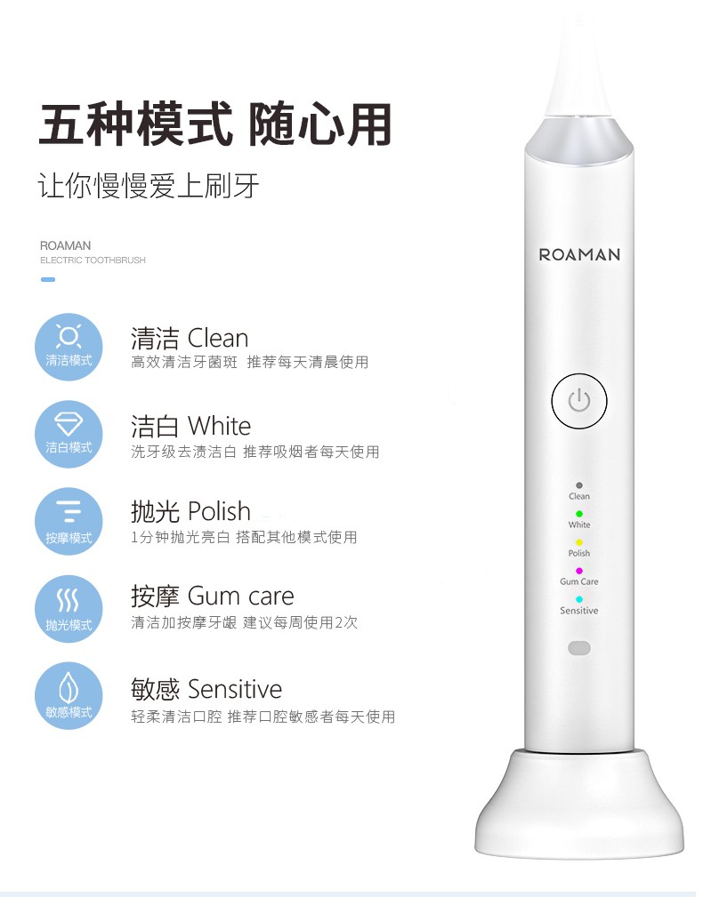 无线感应式充电成人5档声波电动牙刷 智能敏感美白 白色